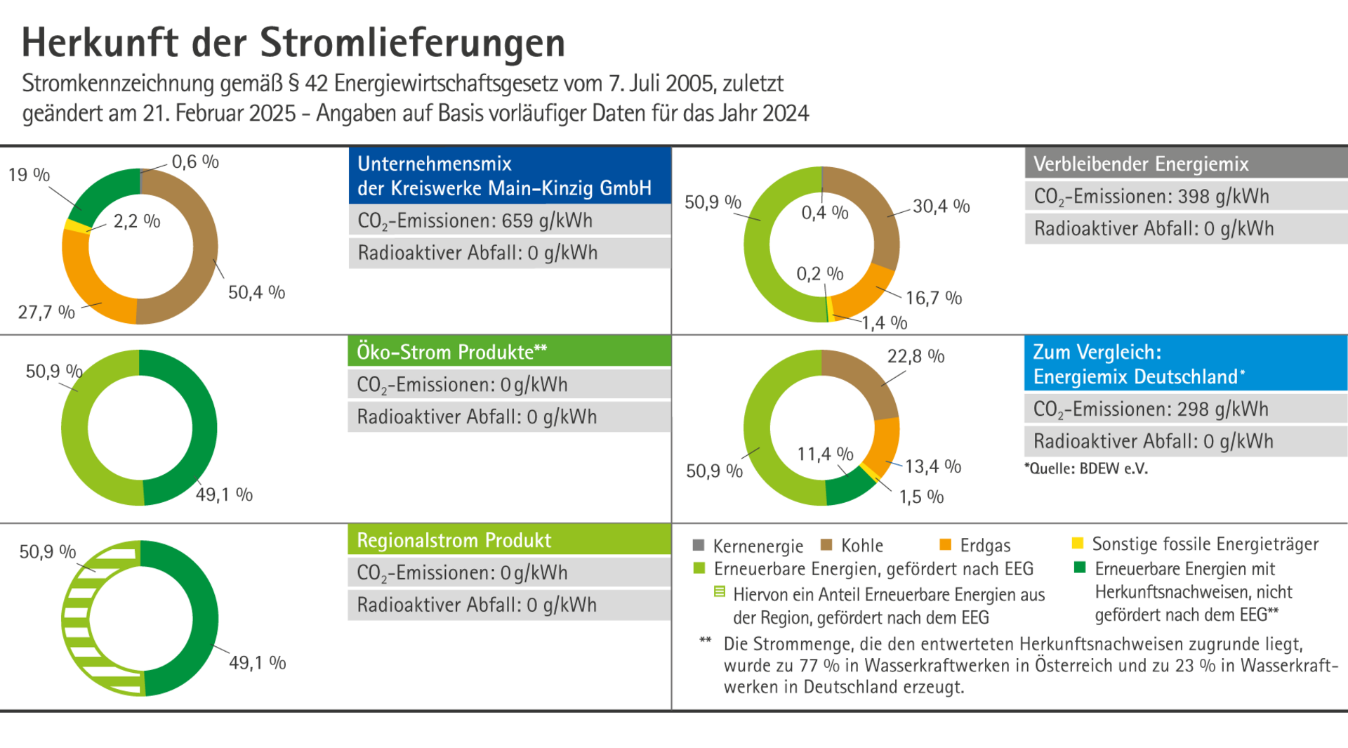 Die Kreiswerke Main-Kinzig informieren gemäß § 42 Energiewirtschaftsgesetz vom 7. Juli 2005 über die Herkunft der Stromlieferungen der Kreiswerke Main-Kinzig GmbH.